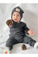 Pamuk Bereli 3’lü Takım Bebek Ve Çocuk Antrasit