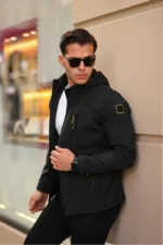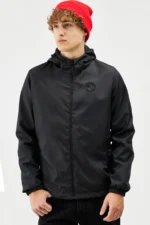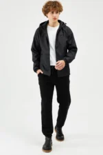Erkek Siyah Içi Astarlı Suya Dayanıklı Kapüşonlu Cepli Yağmurluk –